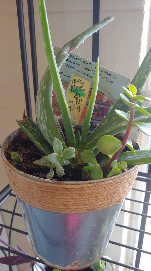 This gorgeous aloe arrangement isn't just another pretty face! Aloe has medicinal value for burns. Don't buy a skin product! Just use one of the leaves of this plant, and you will be healed!